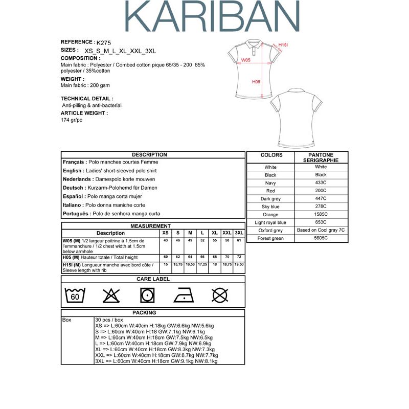WK275 | Polo piquè donna antibatterica 60°