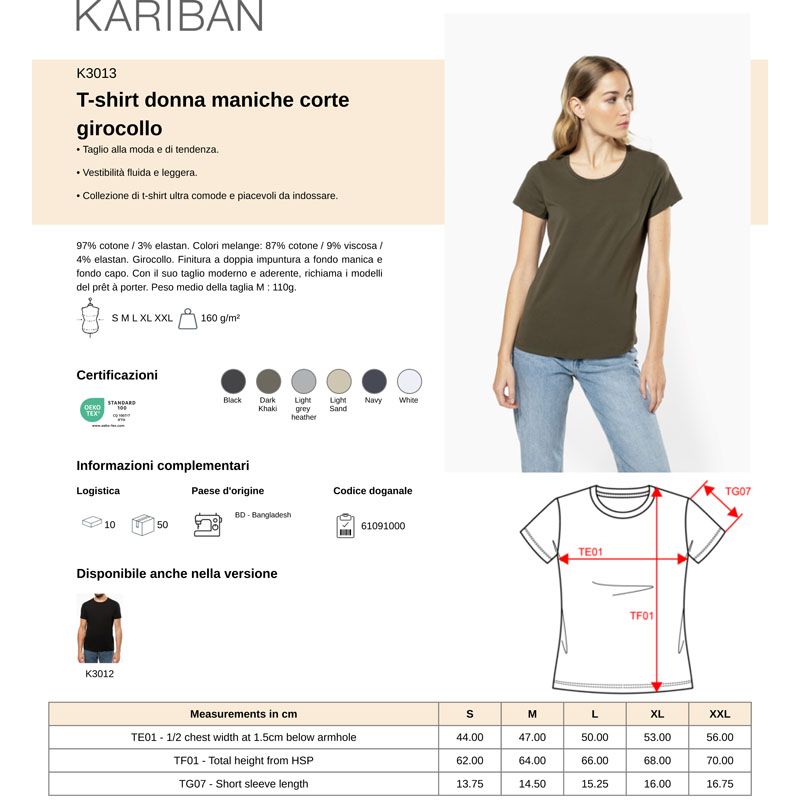 k3013 | t-shirt aderente donna girocollo da personalizzare online su Gecoshopping a prezzi scontati