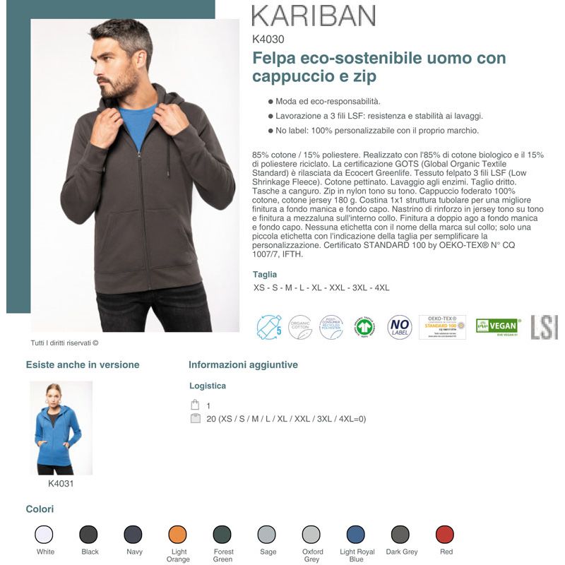 k4030 | felpa uomo con cappuccio e zip ecosostenibile da personalizzare online su Gecoshopping a prezzi scontati