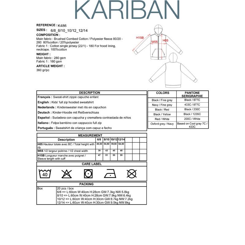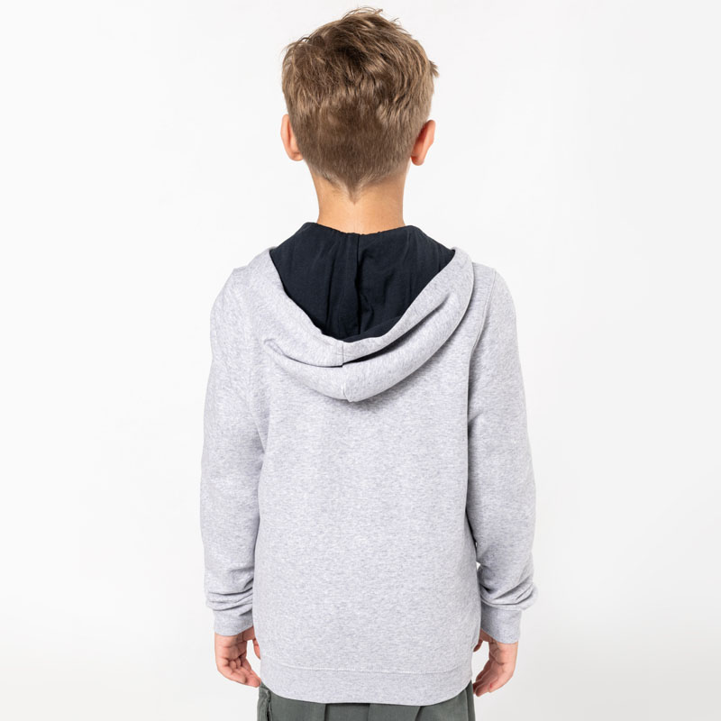 K486 | Felpa bambino con cappuccio e zip in contrasto
