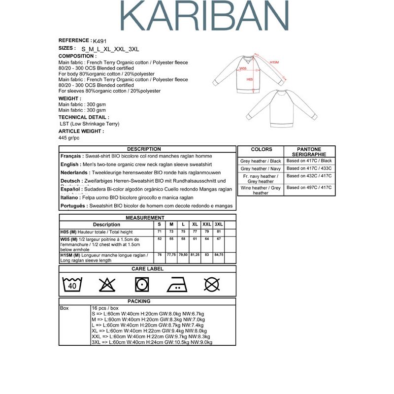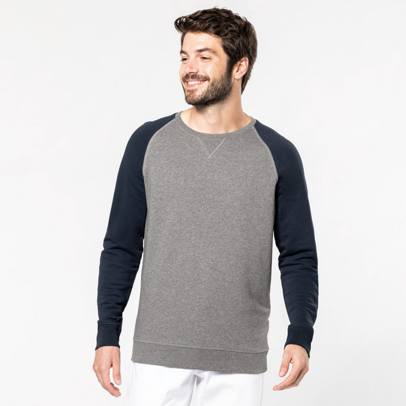 K491 | Felpa girocollo bio raglan uomo bicolore