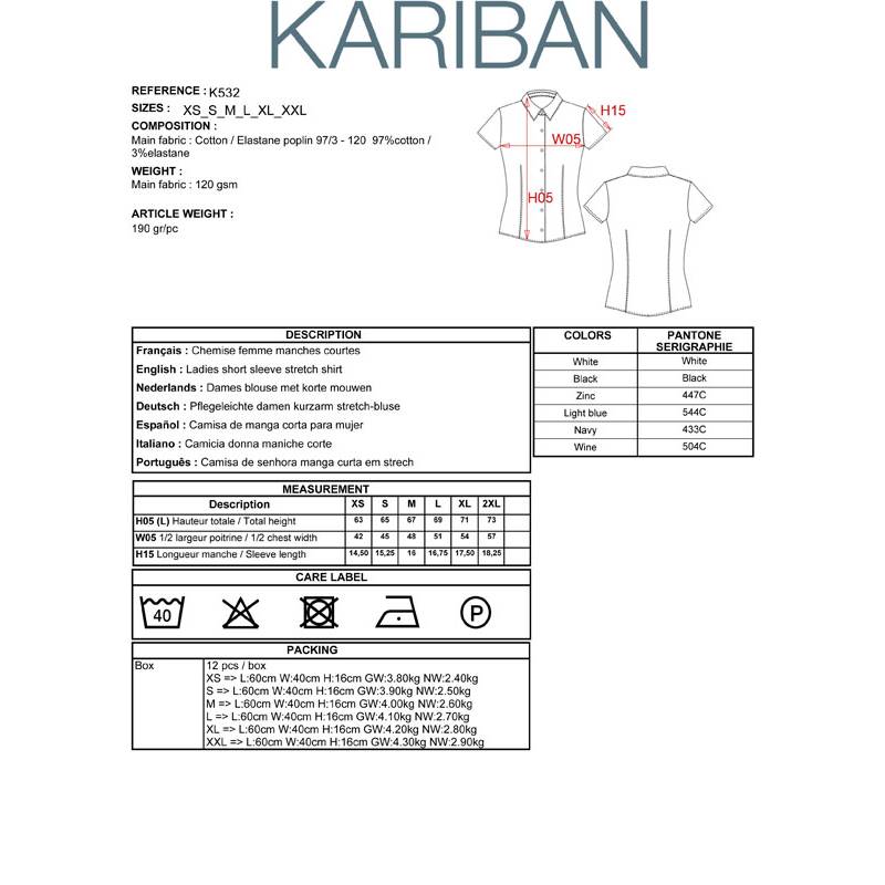 k532 | camicia donna elasticizzata maniche corte da personalizzare online su Gecoshopping a prezzi scontati