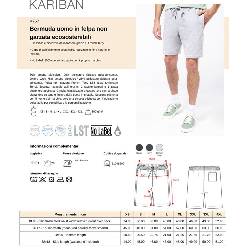 k757 | pantaloncini corti ecosostenibili in felpa leggera da personalizzare online su Gecoshopping a prezzi scontati