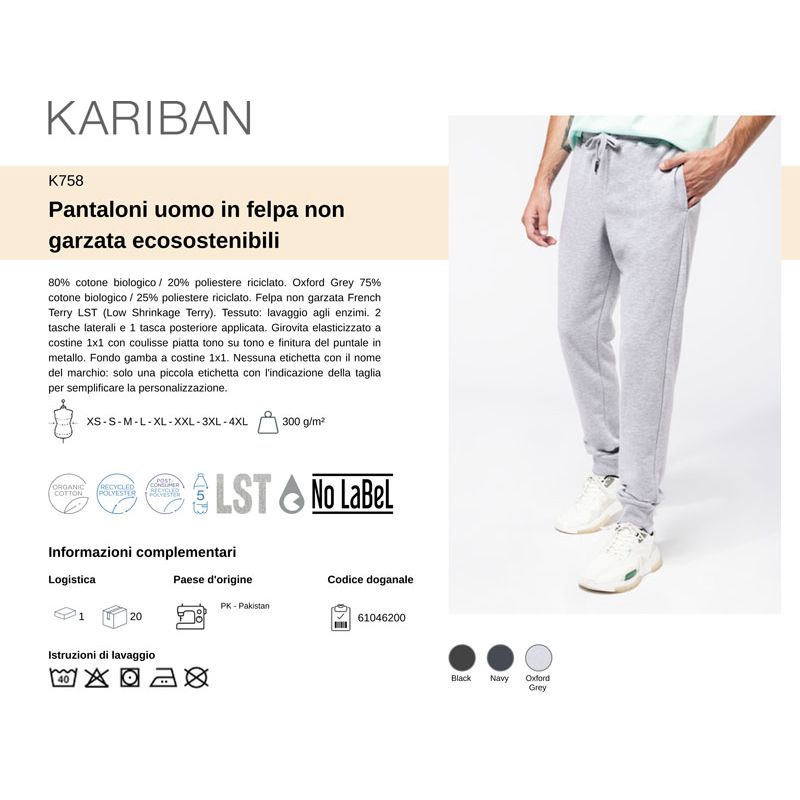 k758 | pantaloni in felpa leggera ecosostenibili da personalizzare online su Gecoshopping a prezzi scontati