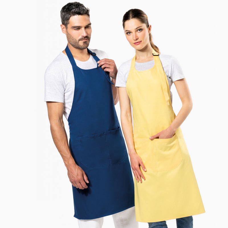 • Fibbia in plastica riciclata sul laccio collo per regolare la lunghezza del grembiule.