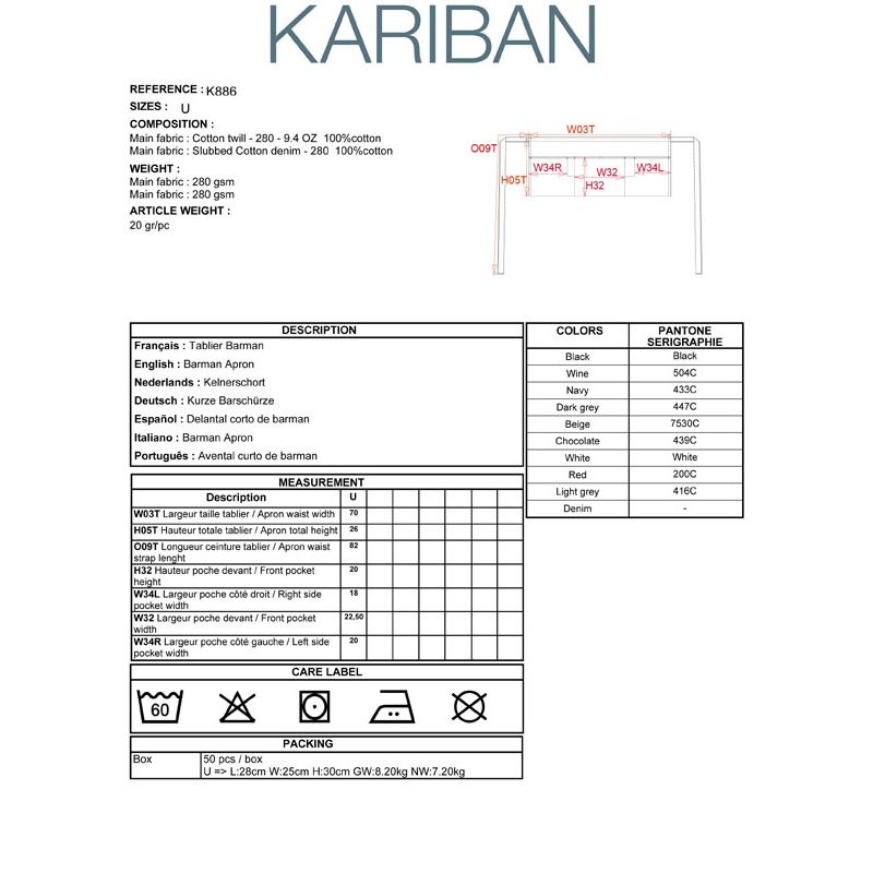 k886 | grembiule in cotone corto da personalizzare online su Gecoshopping a prezzi scontati