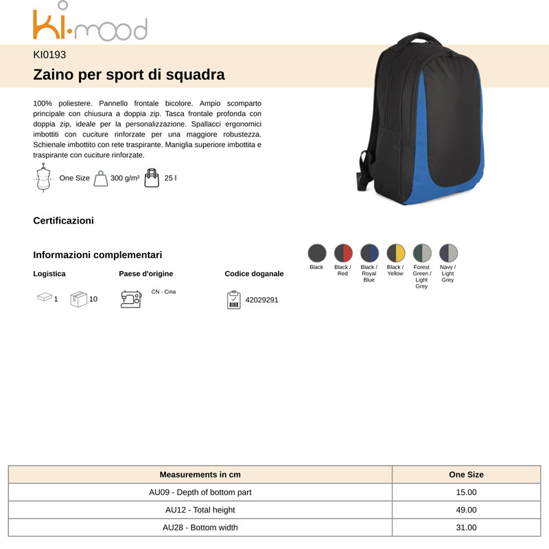KI0193 | Zaino Sportivo