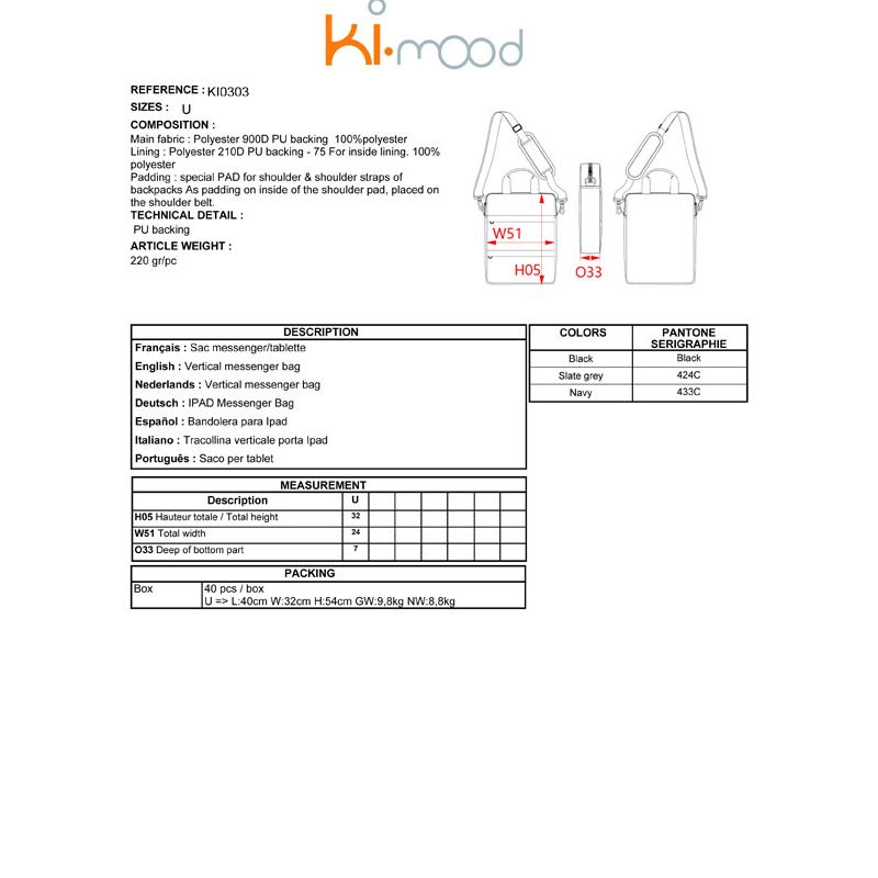 - Tracollina verticale porta Ipad in 900D PU backing.