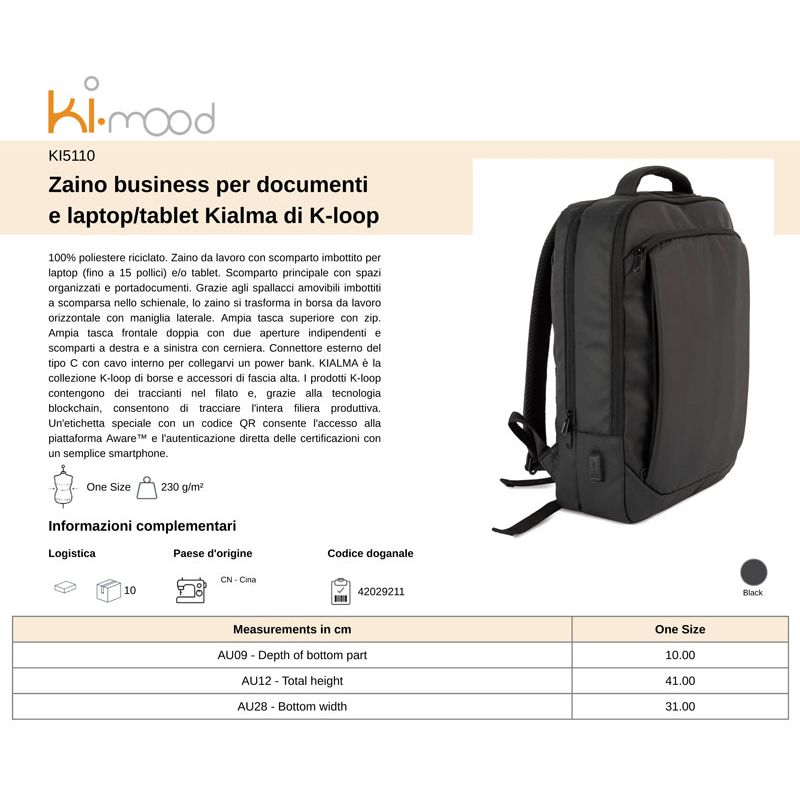 ki5110 | zaino borsa business kialma di k-loop da personalizzare online su Gecoshopping a prezzi scontati