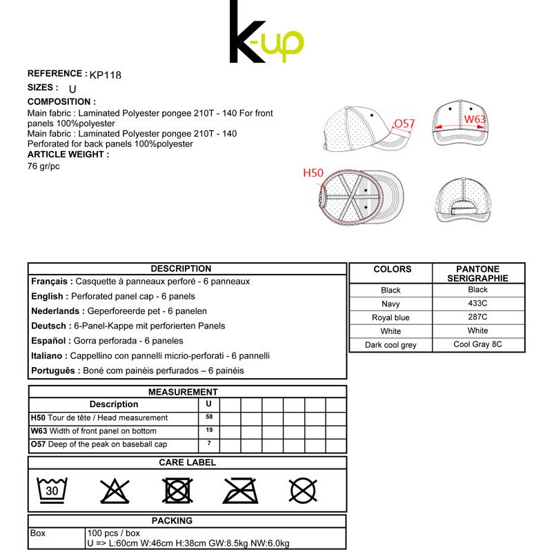 kp118 | cappellino microforato sport 6 pannelli da personalizzare online su Gecoshopping a prezzi scontati