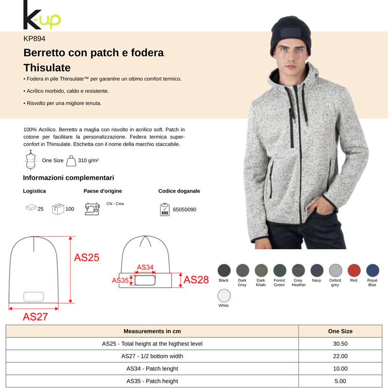 kp894 | berretto con patch e fodera thinsulate da personalizzare online su Gecoshopping a prezzi scontati