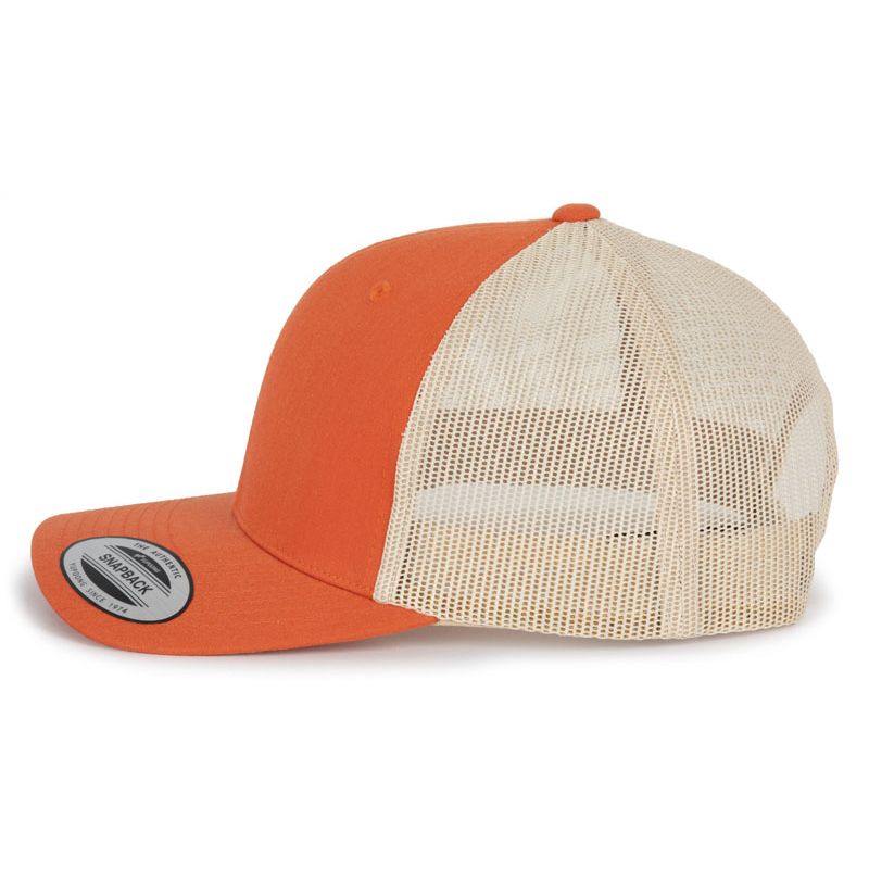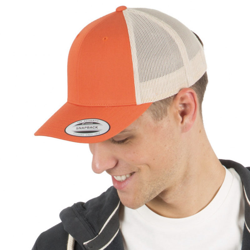 • Modello Trucker rétro di alta qualità con visiera a profilo medio e pannelli anteriori rigidi dello stesso colore