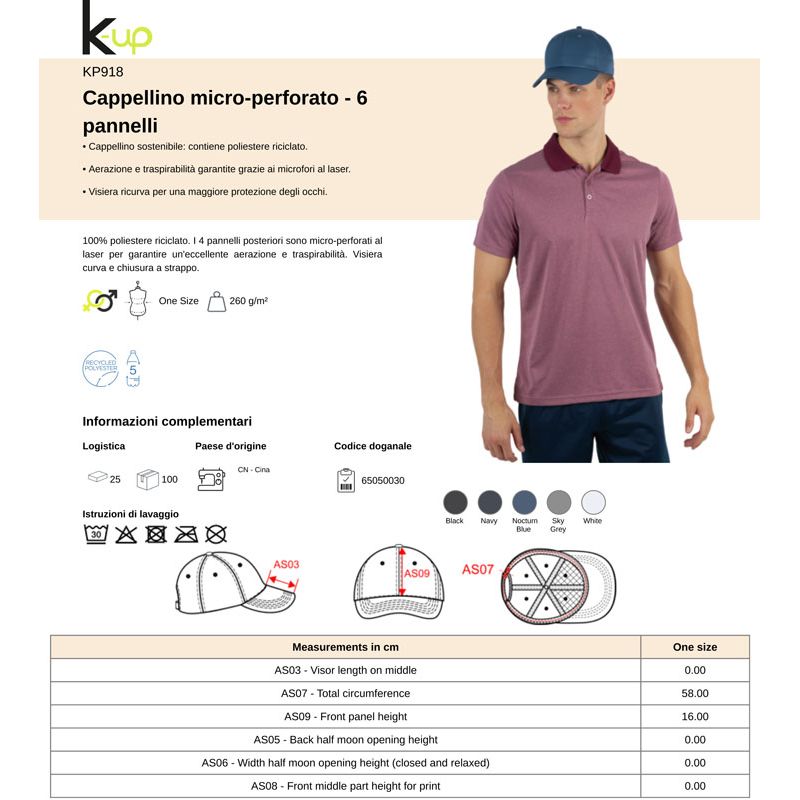 kp918 | cappellino micro-perforato 6 pannelli da personalizzare online su Gecoshopping a prezzi scontati