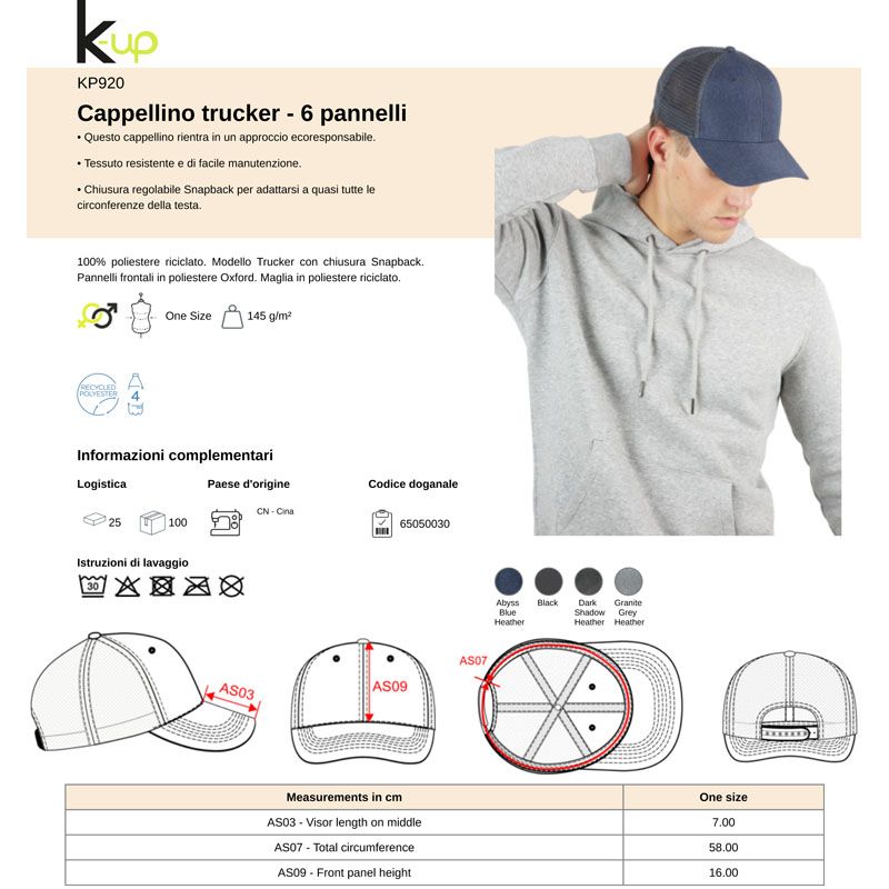 kp920 | cappellino trucker 6 pannelli da personalizzare online su Gecoshopping a prezzi scontati