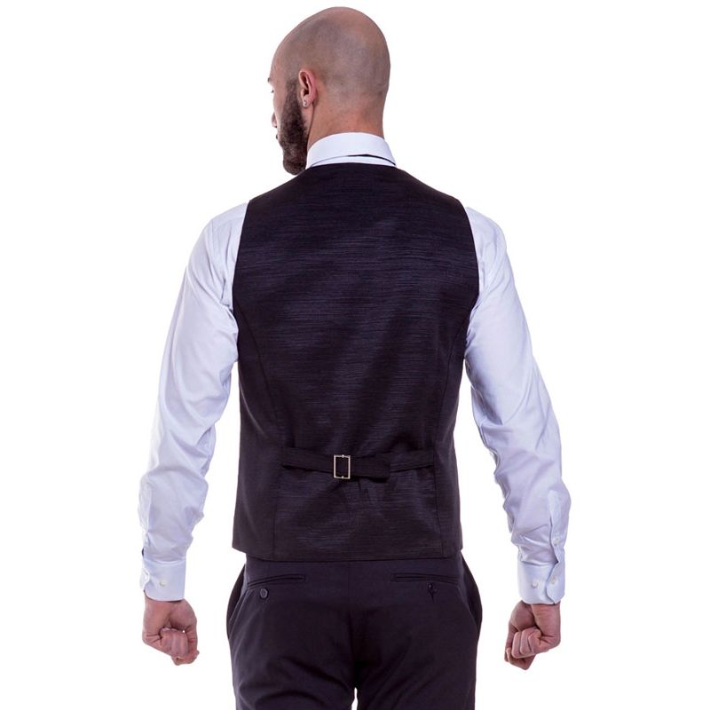 Gilet realizzato in tessuto di pregio caratterizzato da una particolare armatura a cannetè con filati tecnici che creano un effetto visivo piacevole.