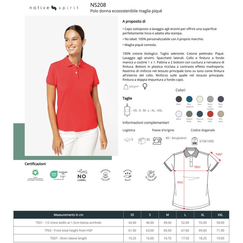 ns208 | polo donna piquè ecosostenibile da personalizzare online su Gecoshopping a prezzi scontati