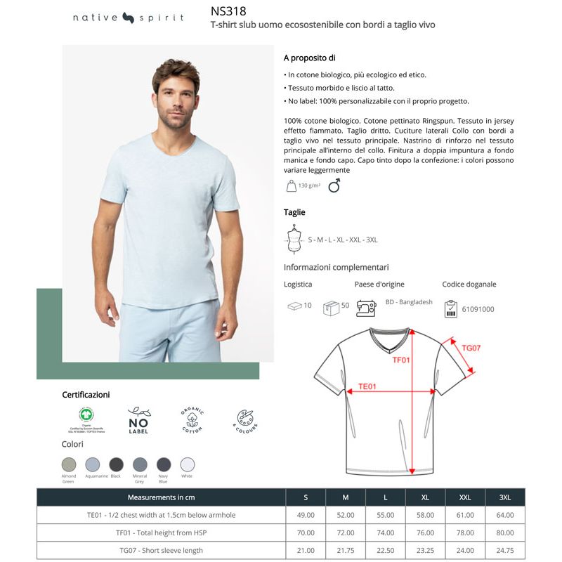 ns318 | t-shirt slub uomo ecosostenibile da personalizzare online su Gecoshopping a prezzi scontati