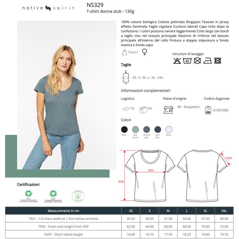 ns329 | t-shirt slub donna da personalizzare online su Gecoshopping a prezzi scontati