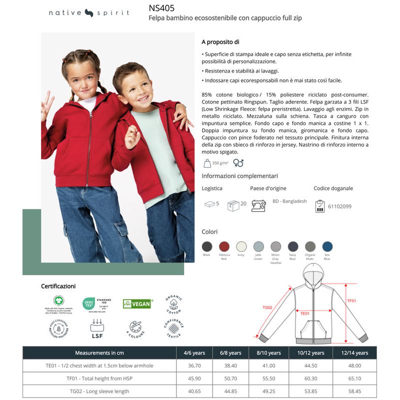 ns405 | felpa bambino ecosostenibile cappuccio e zip da personalizzare online su Gecoshopping a prezzi scontati