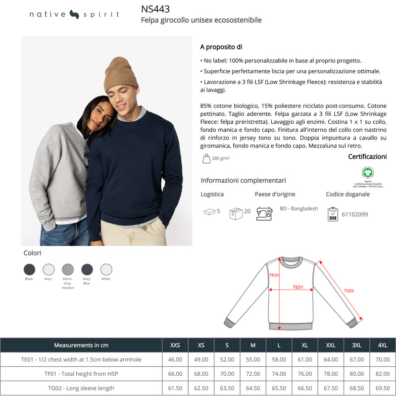 ns443 | felpa girocollo unisex ecosostenibile da personalizzare online su Gecoshopping a prezzi scontati