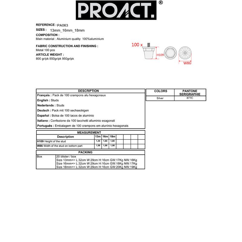 PA063 | Confezione tacchetti alluminio esagonali