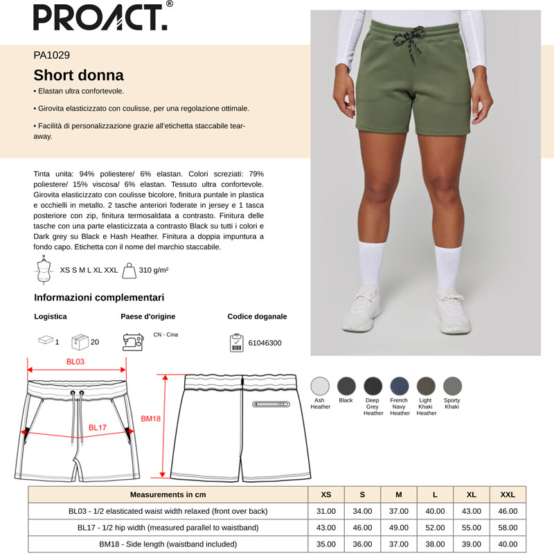 pa1029 | short performance donna da personalizzare online su Gecoshopping a prezzi scontati