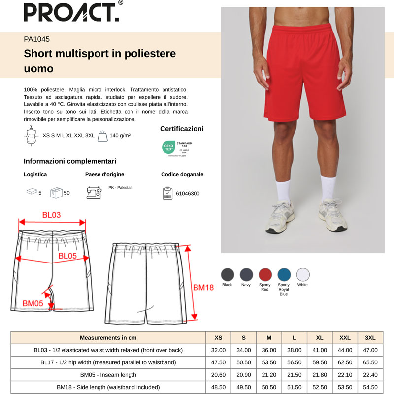 pa1045 | pantaloncino multisport uomo da personalizzare online su Gecoshopping a prezzi scontati
