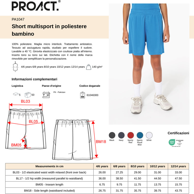 pa1047 | pantaloncini multisport bambino da personalizzare online su Gecoshopping a prezzi scontati