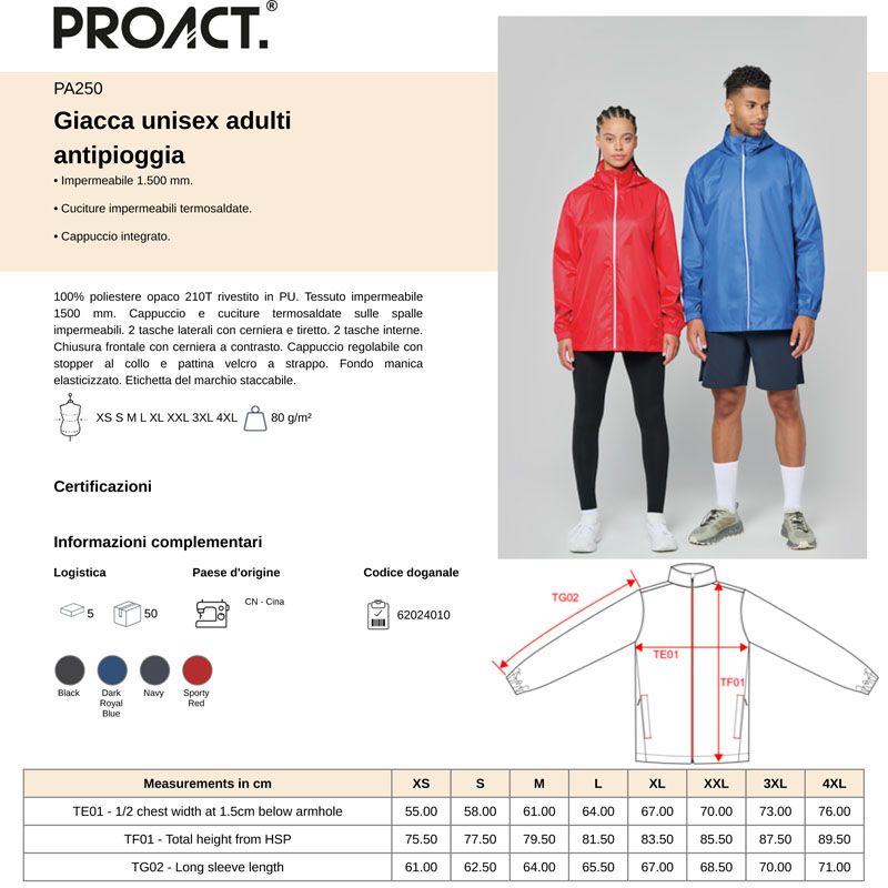 pa250 | giacca unisex antipioggia da personalizzare online su Gecoshopping a prezzi scontati