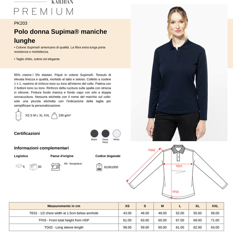 pk203 | polo donna supima manica lunga da personalizzare online su Gecoshopping a prezzi scontati