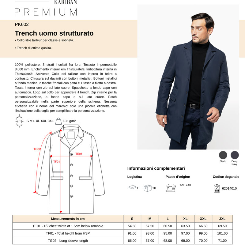 pk602 | trench uomo strutturato da personalizzare online su Gecoshopping a prezzi scontati