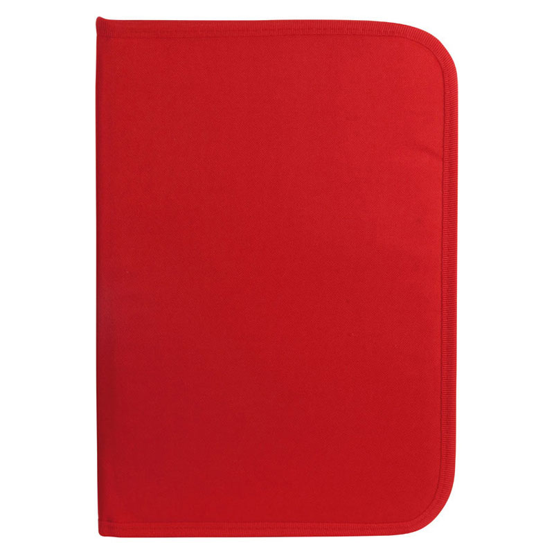 Cartella portadocumenti, formato A4, con numerose tasche interne, chiusura a zip.