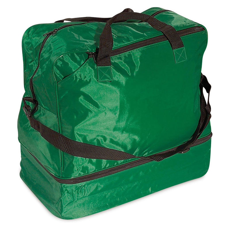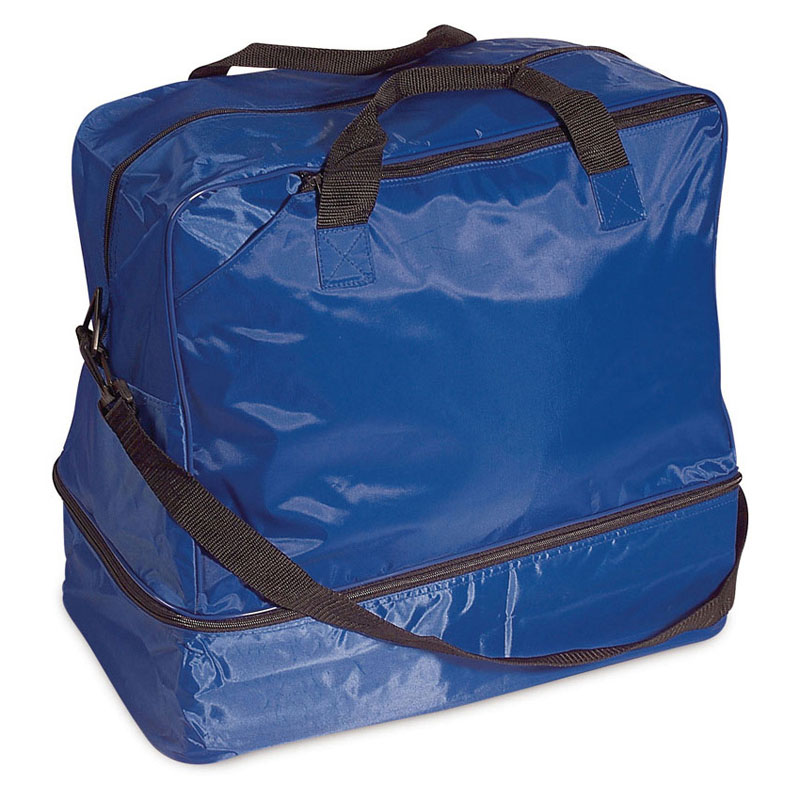 Borsone sportivo con porta scarpe separato a struttura rigida.