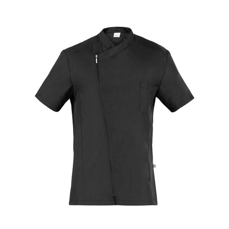 Presenta un taschino porta penne lato cuore, l’abbottonatura asimmetrica con una zip rovesciata dall’alta resistenza agli urti e due fianchetti dietro in maglia di piquet per dare una maggiore libertà ai movimenti.