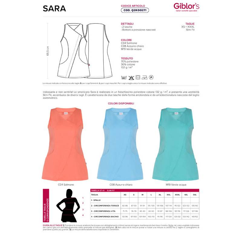 Indossarla e non sentirla! Lo smanicato Sara è realizzato in un freschissimo poliestere cotone 132 g / m², e presenta una vestibilità Slim Fit, accentuata da diversi tagli.