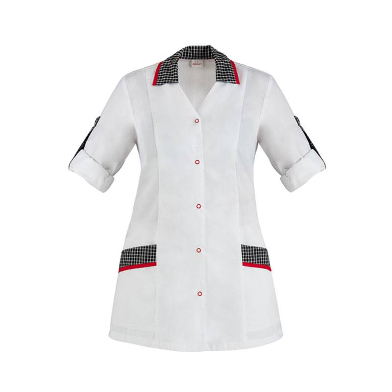 È caratterizzata da due tasche e dal collo a camicia con sbieco a contrasto, abbottonatura con classica anellina e manica arrotolabile con alamaro interno.