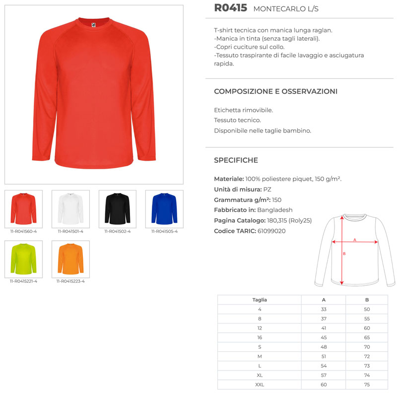 r0415k | t-shirt tecnica montecarlo ls kids da personalizzare online su Gecoshopping a prezzi scontati
