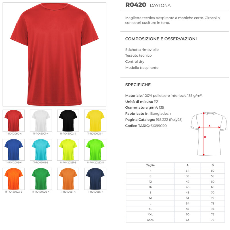 r0420 | t-shirt tecnica daytona da personalizzare online su Gecoshopping a prezzi scontati