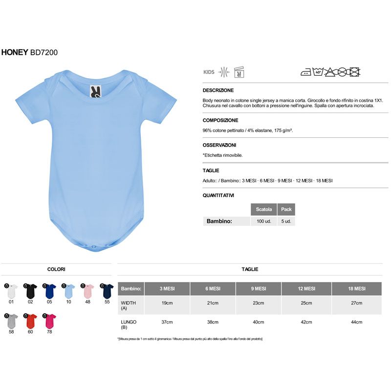 r7200 | body manica corta honey da personalizzare online su Gecoshopping a prezzi scontati