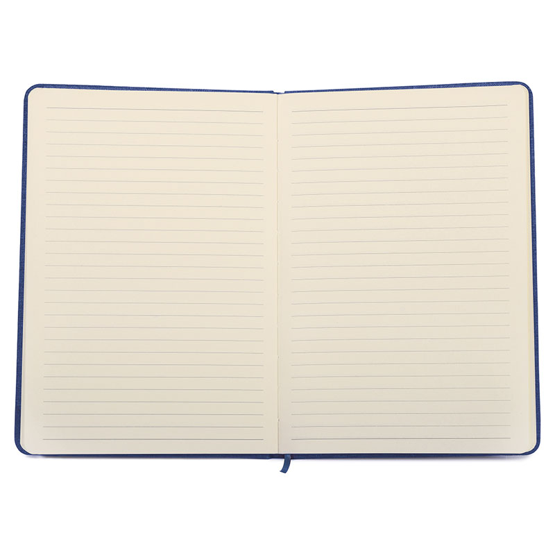 Blocco per appunti con fogli a righe (80 fogli), cordino segnalibro, chiusura con elastico.