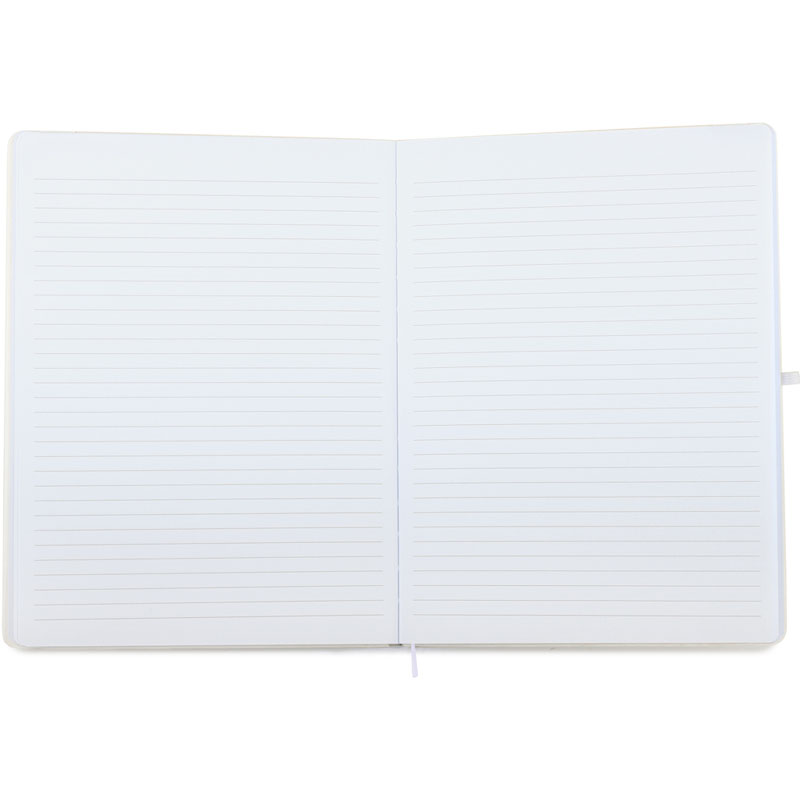 Blocco grande per appunti con fogli a righe (64 fogli), cordino segnalibro, passante elastico porta penna (penna non inclusa), chiusura con elastico.