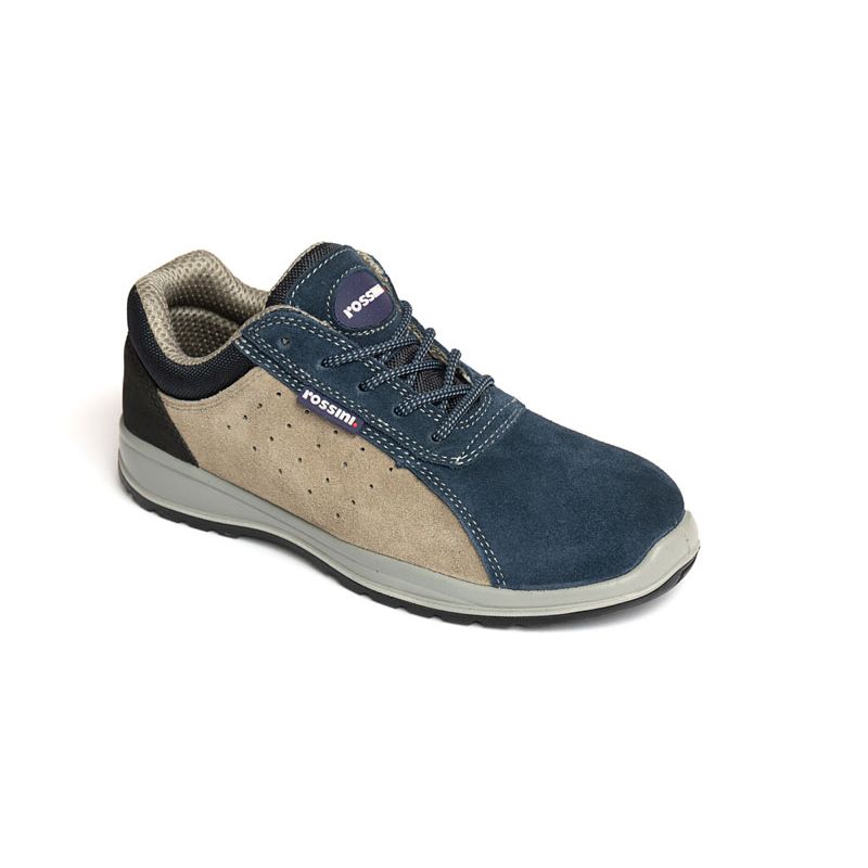 - Calzatura bassa in pelle scamosciata forata di colore blu e grigio