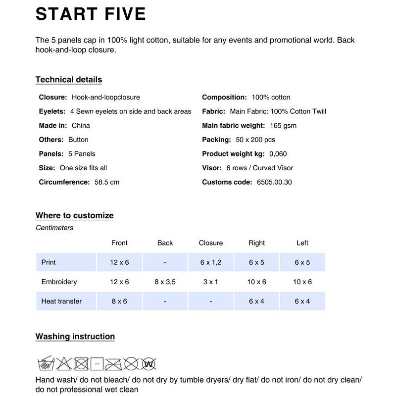 start five | cappello 5 pannelli da personalizzare online su Gecoshopping a prezzi scontati