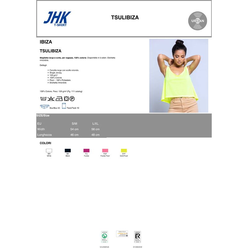 - Tessuto: 100% Cotone (Colori fluo 100% poliestere)