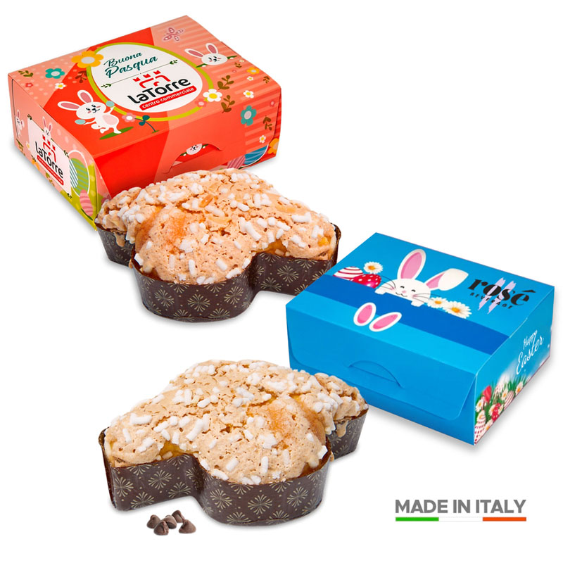 Colombina classica o al cioccolato da 100 gr. con scatola totalmente personalizzabile.