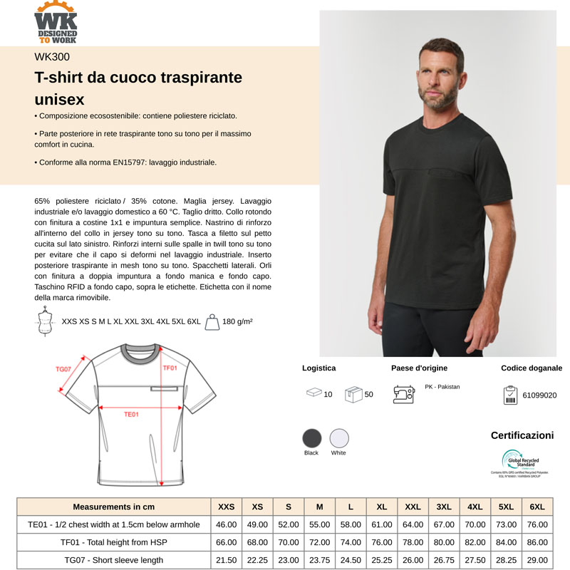 WK300 | T-shirt da Cuoco Traspirante