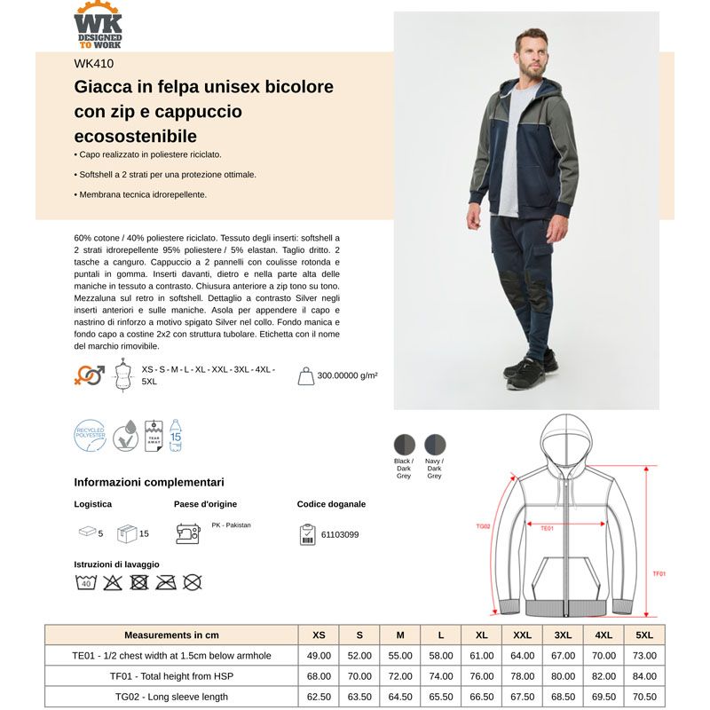 wk410 | felpa unisex bicolore ecosostenibile cappuccio zip da personalizzare online su Gecoshopping a prezzi scontati