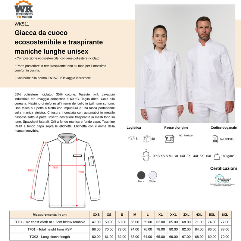 wk511 | giacca da cuoco ecosostenibile da personalizzare online su Gecoshopping a prezzi scontati