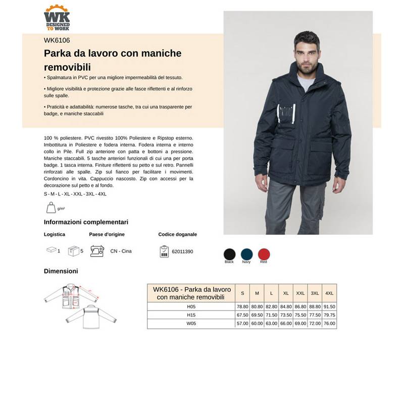 wk6106 | parka da lavoro con maniche removibili da personalizzare online su Gecoshopping a prezzi scontati