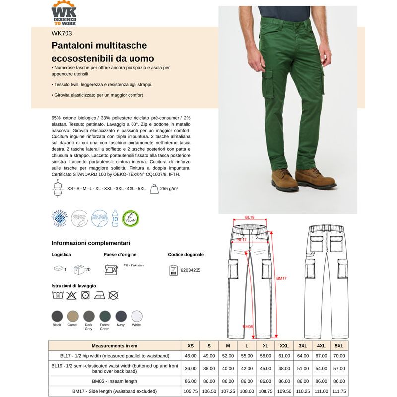 wk703 | pantalone multitasche ecosostenibile uomo da personalizzare online su Gecoshopping a prezzi scontati